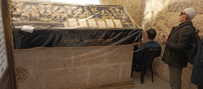 На входе стоит стенд с бесплатными брошюрками - на английском и на иврите. Так что я взял английскую версию и погрузился в чтение (написано довольно просто, я только одно слово не знаю). В это время мимо прошла группа - семейная пара лет за 40 с русскоговорящим гидом. Я хотел узнать у него, для чего нужен почтовый адрес в брошюрке, но он не знал. Вот сам адрес: tehilimdavid@gmail.com, туда можно послать имена для бесплатной молитвы. Может, есть иудеи, кому это пригодится.