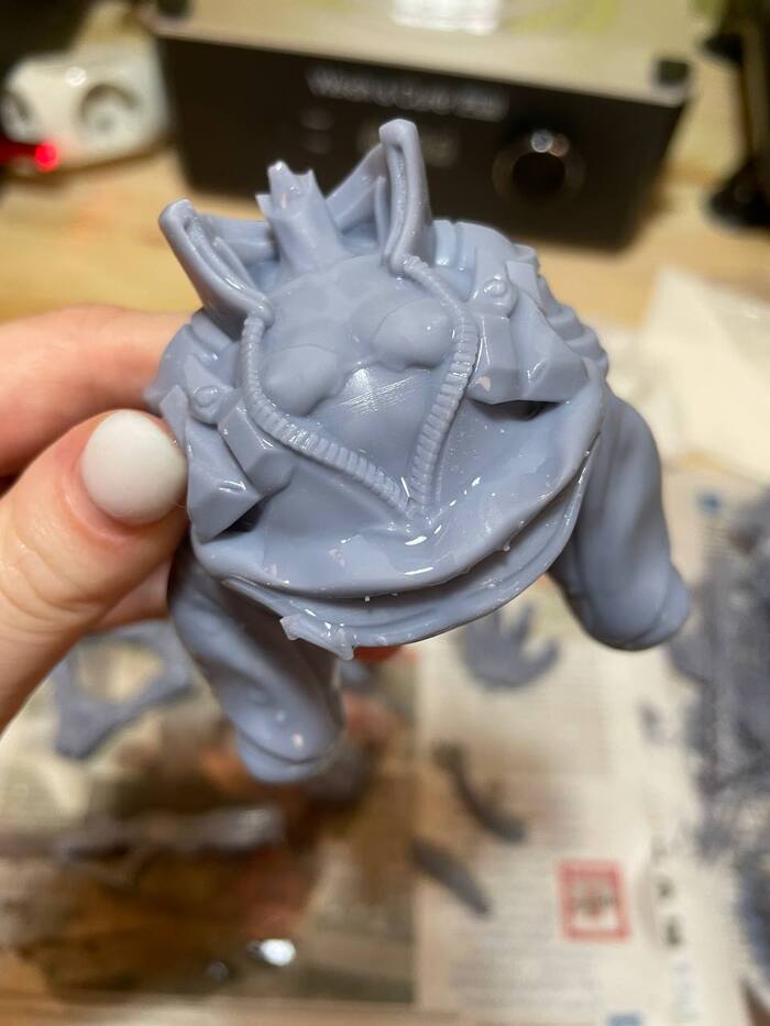 Здесь я распечатала детали для обеих Ребекк, промыла в спирту, засветила ультрафиолетом и избавилась от подставок. Процесс нанесения грунта показывать не буду, т.к. ничего нового Вы там не увидите.