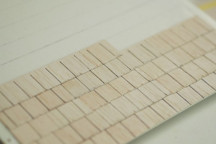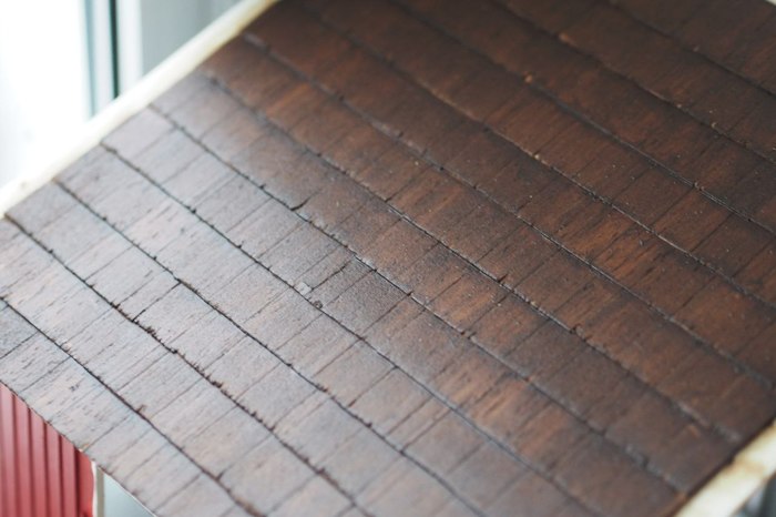 Крыша. Дерево для полов все еще было в пути, поэтому решила, раз на меня такая аномальная работоспособность напала, сделать крышу. Делала из 1 мм бальсы по туториалу из этого видео.