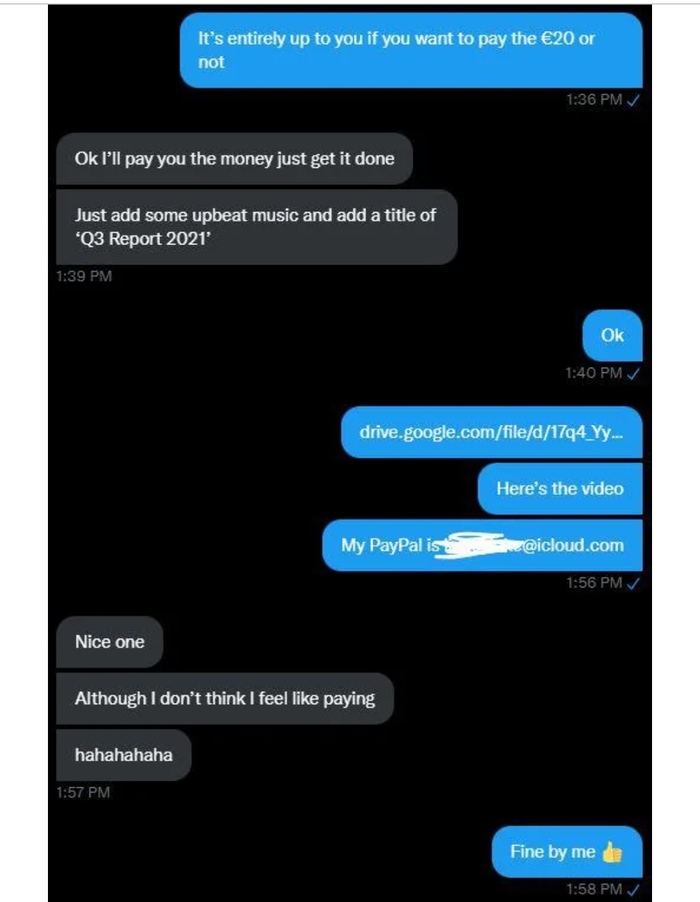 — Нет... Нет. Кажется, вы меня не поняли. У меня много подписчиков в Инсте. Посмотрите мою страницу [...]. Так что, если вы пришлете мне ожерелья, вы получите рекламу на моей странице и плюс от всех, кому они будут подарены. Это продвинет ваш бизнес, обещаю.