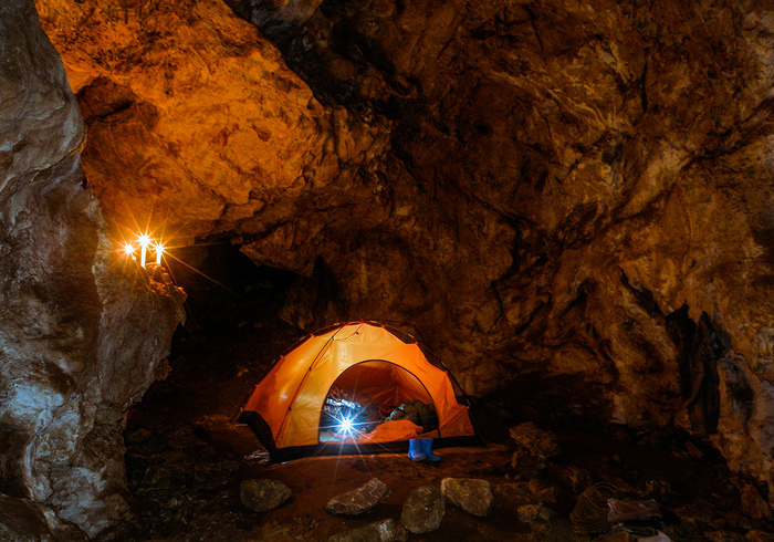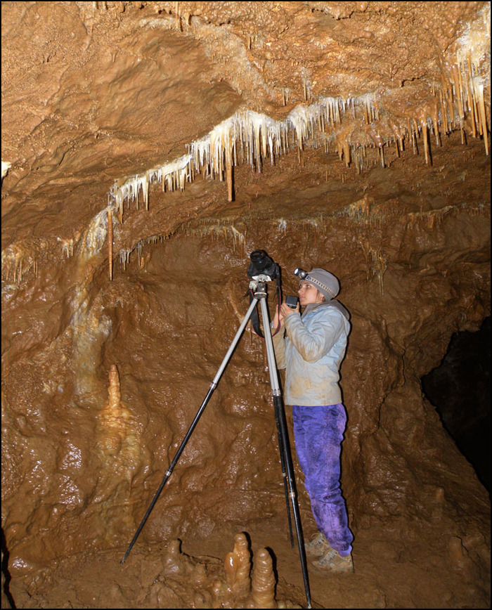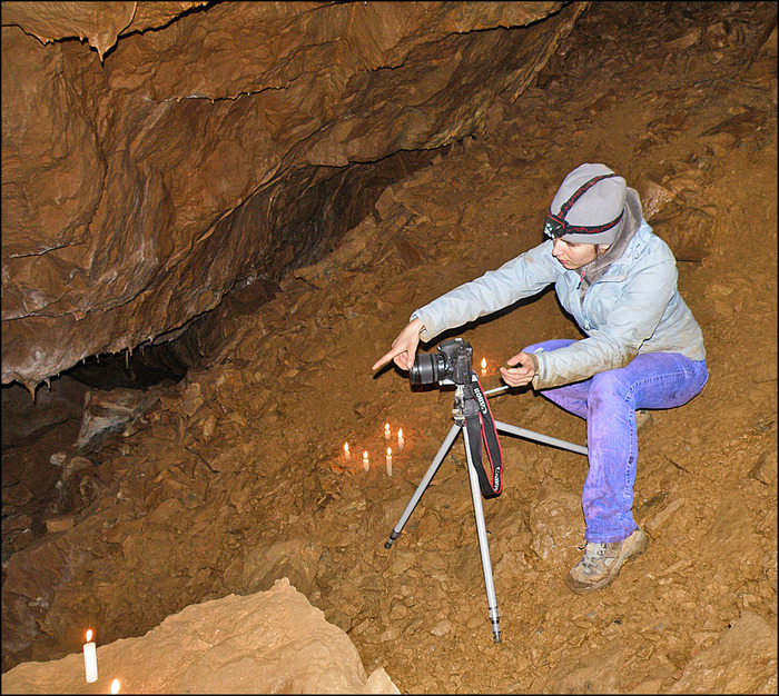 Захотела одна москвичка, Аурика, побывать в красивой пещере, да что-нибудь там сфотографировать. Нашла меня по интернету. Мы решили, что для этого процесса достаточно недели. Она прилетела к нам в Сибирь, к этому моменту я уже машину подготовил, поехали. Быстро провесили верёвки, спустились, сварили ужин и сразу спать, потому что Аурика устала в пути.