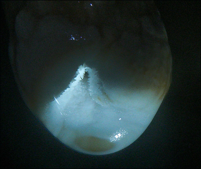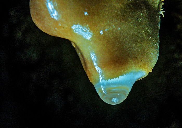 В темноте сталагмиты не проявляют визуальной активности. Был зафиксирован всего лишь обычный рост. Однако, стоит лишь включить хотя бы фонарь, как сталагмиты принимаются играть светом.