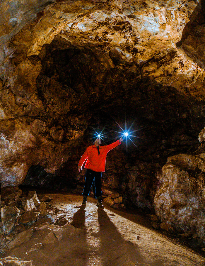 Пещеры бывают весьма просторными. Иногда потолок может быть таким высоким, что обычный фонарь не достанет.