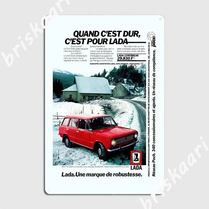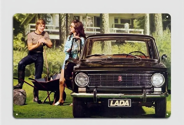 Табличка жестяная в стиле ретро с рекламой автомобиля ВАЗ-2101. Размеры таблички 20х30 см. Ссылка на неё