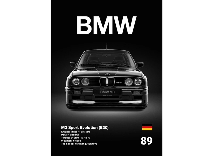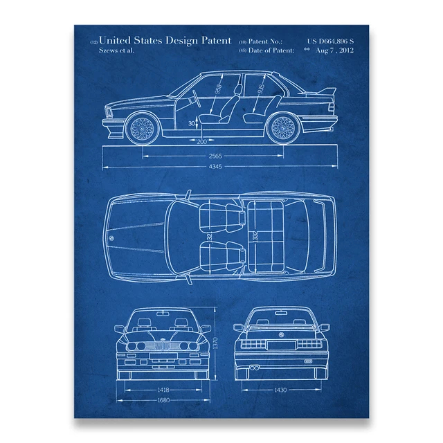 Постер в виде чертежа-патента на автомобиль BMW M3 E30 . Ссылка на него