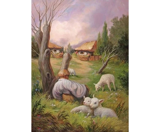 Живопись на холсте "Оптическая иллюзия с девушкой и животными" 50x75 см. Ссылка на неё