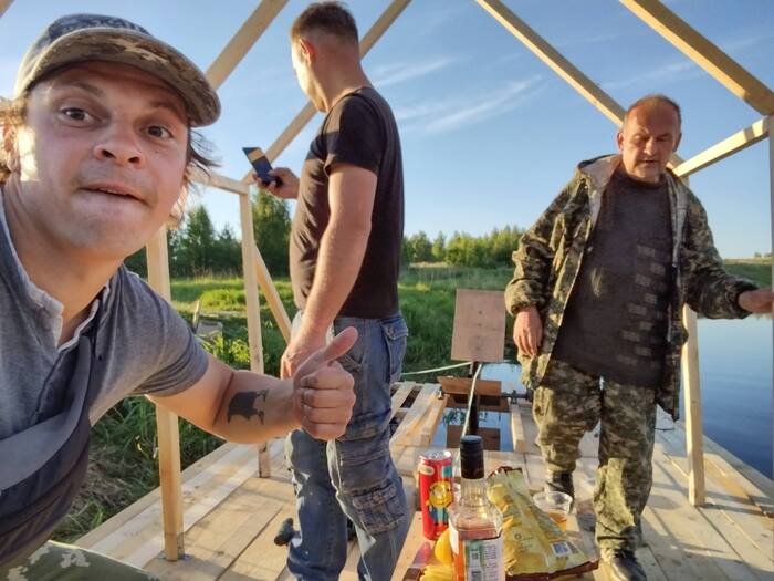 Так как у них была лодка с мотором, то был отправлен гонец до города Плёс за горячительными напитками (надо было согреться после дождя). Водитель лодки был трезв по медицинским соображениям, так что услуга "трезвый водитель" была включена)))