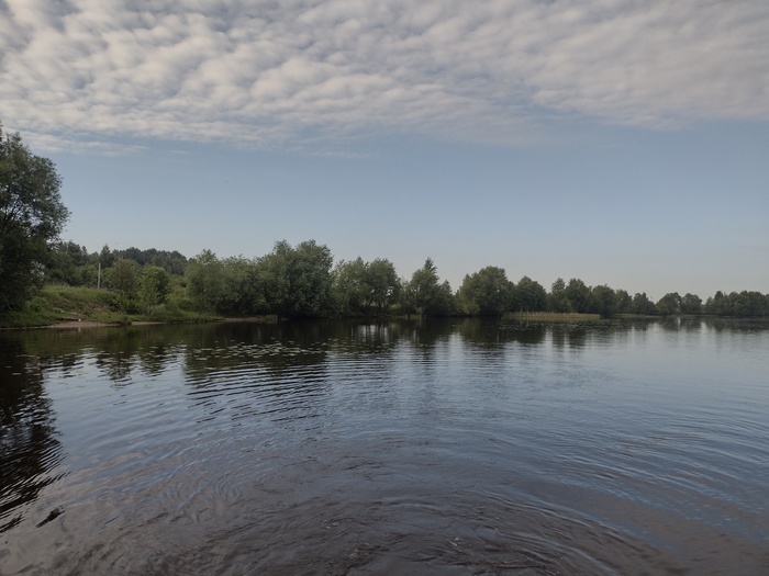 Мы же, как только паром отчалил, отправились дальше. Пройдя буквально километров 5 , решили встать, так как надвигалась гроза. Шла нам навстречу, и что бы нас не унесло обратно к парому, пришвартовались к берегу...