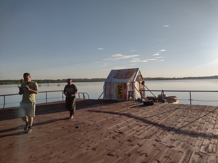 Проснулись рано утром (около 11 часов). Позавтракали остатками ужина. Приняли для храбрости и .... встали на ремонт и доделки. Не много переделали навес, распределили багаж и наладили эргономику пространства. Кто бы что не говорил, а 18 квадратных метра на троих это мало. Тем более когда 3 квадрата это только двигательная установка. Под вечер прошли буквально пару км и опять встали на ночёвку.... Все же в курсе, что Волга судоходная река?) Мы то же были в курсе, но безалаберность капитана и отсутствие опыта походов на судоходных реках сыграли дурную шутку.... Юнга устал слушать наши храпы и сошёл на берег с палаткой. Мы с отцом расположились прямо на баркасе. До этого же ночевали и ни чего страшного не происходило... Множество круизных теплоходов проходит по Волге, так же много проходит сухогрузов, про легкомоторные лодки и говорить не надо: их там полно.