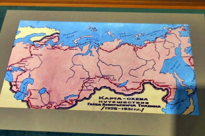 Глеб Травин - уроженец Псковщины. Спортсмен, ударивший велопробегом по всей необъятной территории молодой еще советской земли на рубеже 1920-30х годов: по ее южному и северному краю, с востока на запад и обратно. Неудивительно, что в Псковском музее есть зал, посвященный этому легендарному путешественнику.