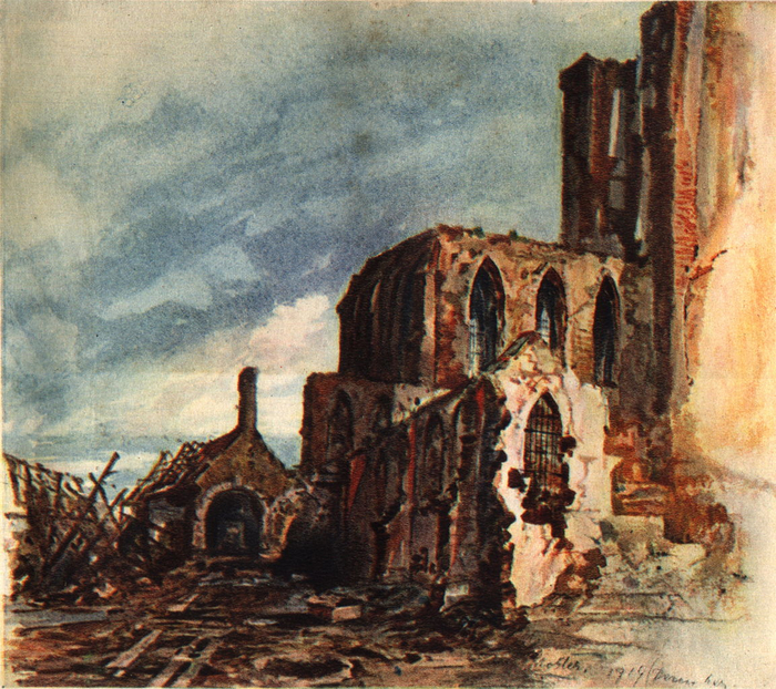 Из "бесспорно евойных" вроде вторая "руина фронтовая" ничего. Но недоработана (наверно чисто с натуры - что вижу, то пою), а надо было деревья характерно сломанные артогнем пририсовать (это и на фотографиях подчеркивали) - спереди справа на переднем плане (а не какую-то хрень непонятную на заднем - автор-то может быть и знал, что это такое там было, но зритель-то нет :-)).