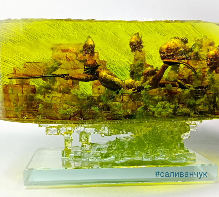 Работа сделана из эпоксидной смолы и пары стаканчиков вискаря .