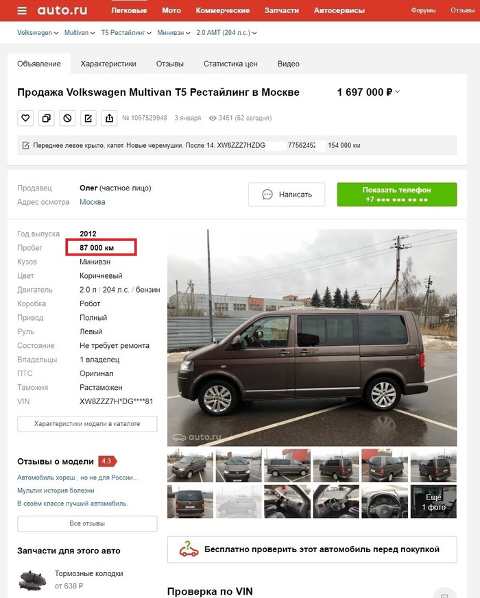 Чаще всего перекупщики завышают год выпуска автомобиля в объявлении. Обычно завышают на один год, но были на моей практике случаи, когда завышали на два года. Тогда я удивился, потому-что думал, что уже видел всё. Когда вы вскроете обман, вы услышите стандартную историю «машина куплена в этом году», «начало эксплуатации в этом году». Благо, популярные сайты объявлений начали проверять и публиковать результаты базовых проверок по VIN.