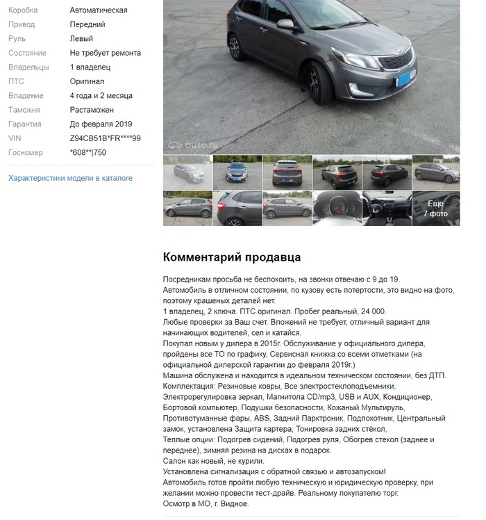 Если продавец отказывается прислать VIN для проверки или неохотно обещает прислать позднее, а когда вы ему напоминаете, то еще позднее и так далее, то возможно это перекупщик, который не хочет обнаруживать недостатки машины или несоответствия того, что заявлено в объявлении и в реальности.