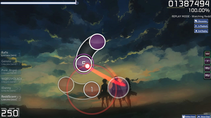 Геймплей на основе музыки: игрок нажимает круги, ведет слайдеры и вращает спиннеры строго в ритм трека.