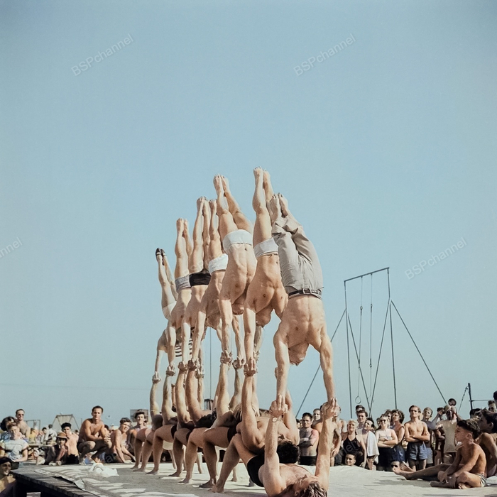 Уличные акробаты в Нью-Йорке, 1931 год.