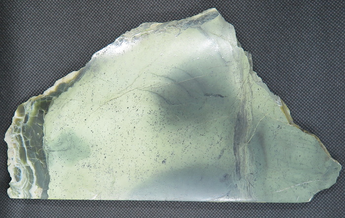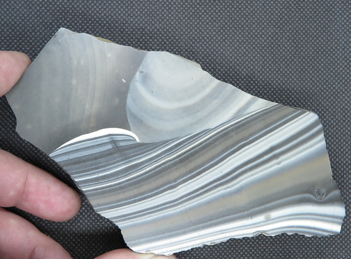 А на этом фото пример упомянутого ранее иризирующего в серебристых тонах из-за наличия мельчайших газовых пузырьков "седого" или "пепельного" обсидиана.