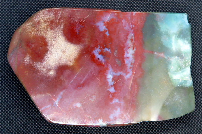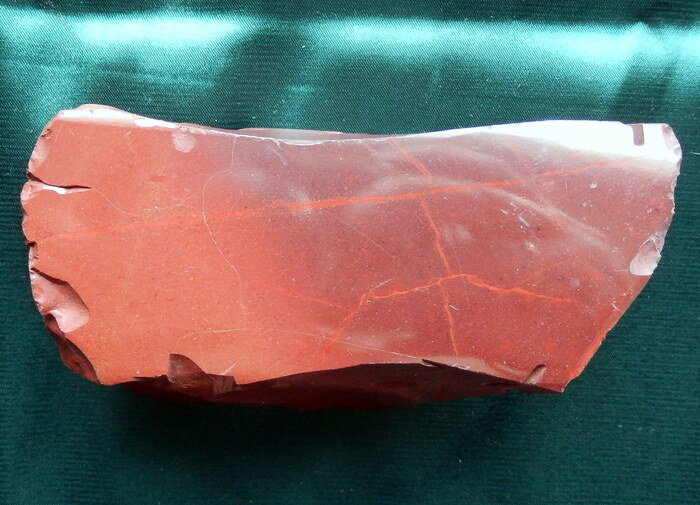 Ну, "черные" камни закончились, пойдём по красным... Самым распространенным в природе красным "красителем", обуславливающим такую окраску многих поделочных камней: от яшмы до халцедона-карнеола, является окисел железа - гематит. Некоторые его разновидности - плотные, хорошо полирующиеся «почки» – радиально-лучистые сростки пластинчато-листоватых кристаллов, приобретающие после обработки почти черный с темно-красным отливом цвет и сильный полуметаллический блеск, применяются в поделочном и ювелирно-поделочном деле под названием гематит-кровавик. Как поэтически говорили в средние века – «…имеет цвет застывшей голубиной крови…».