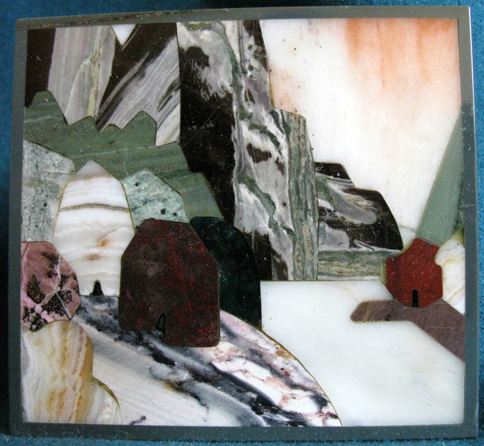 И, так как лимит на одно фото всё же остался, когда-то давным-давно, больше 40 лет назад точно, бессистемно наклеил пластинки поделочного камня с завода "Уральские самоцветы". Здесь многие, о которых вам рассказывал. Для надежности - подписал.