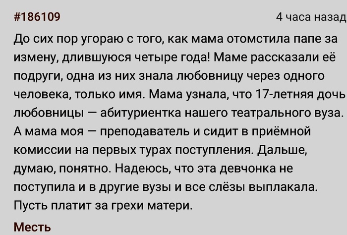 Wildwildworld Скриншоты комментов Серия Подслушано А надо было мстить мужу 2 года назад Скриншот Подслушано Измена Месть Вступительные испытания Родители и дети 13 2 1 Ещё 0