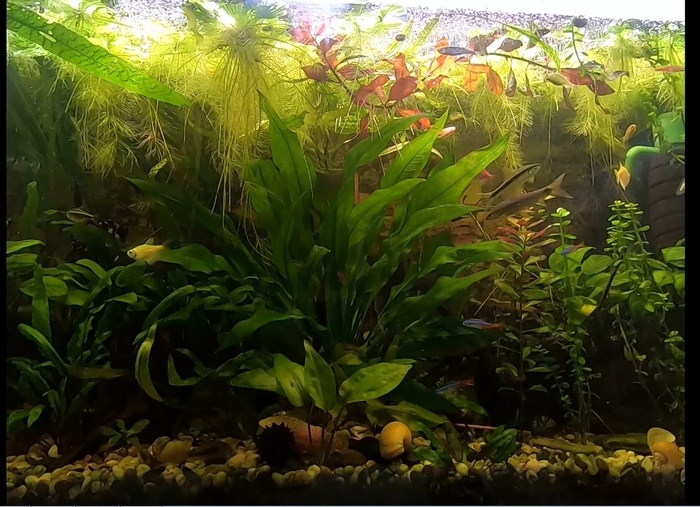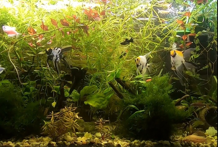 Но в случае с аквариумом друга, где из-за растений не видно обитателей Интернет выдаёт следующую рекомендацию: