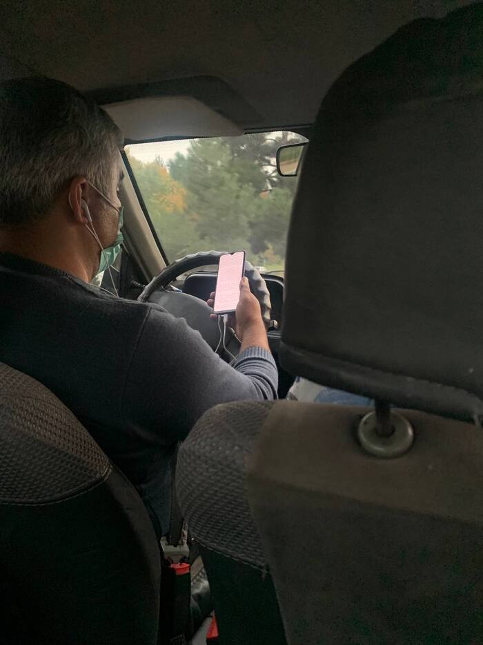 Потом в их общении настала пауза, мужик, продолжая лавировать в этом дорожном хаосе, открыл на телефоне Коран и минут 5 молился, изредка поднимая взгляд на дорогу.