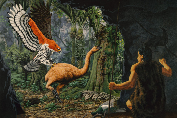 На рисунке ниже изображён орёл Хааста (Hieraaetus moorei), который нападает на охотника маори. Насколько этот сюжет реален и реален ли, вообще? Давайте разберёмся.
