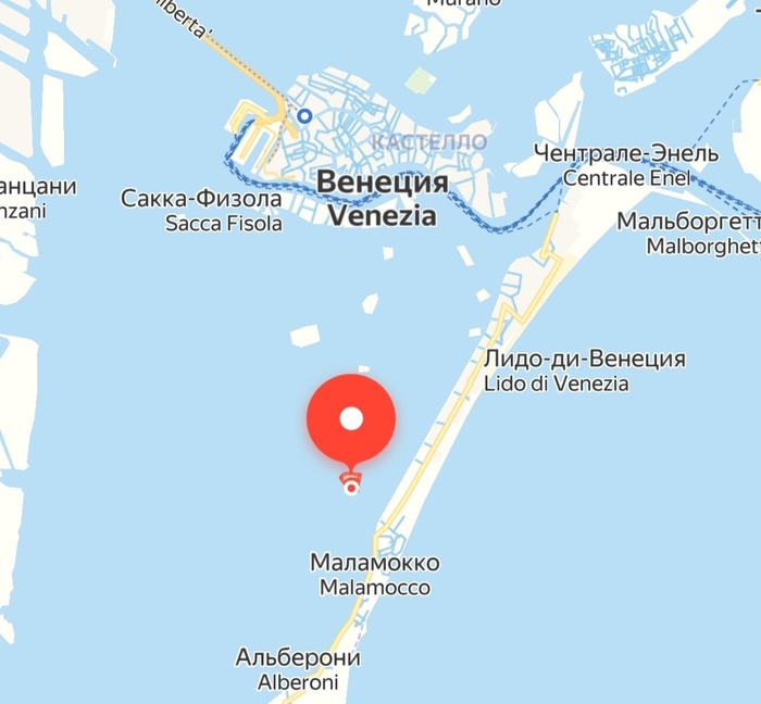 О. Повелья укрылся к югу от Венеции (Италия), напротив Маламокко, южного района Лидо.