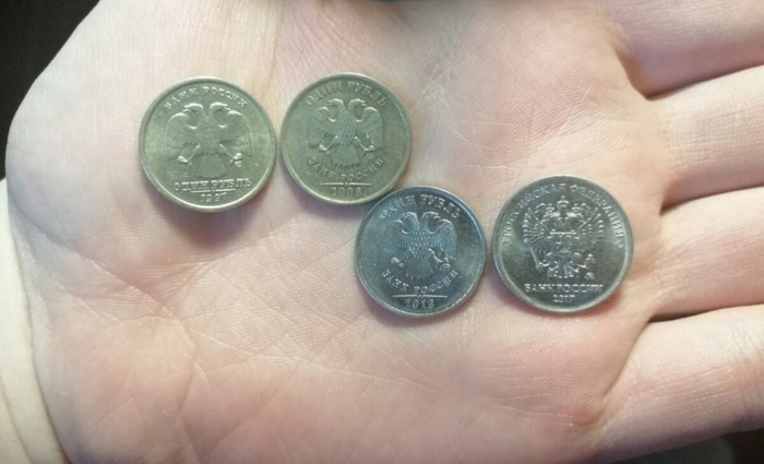 Перед вами две рублёвые монеты. Одна отчеканена в 2015 году, а вторая год спустя. Можете поискать у себя в кошельке точно такие же и убедиться сами.