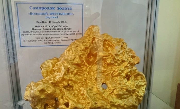 Из всех приведенных примеров, "Большой Русский треугольник" имеет ещё один рекорд. Поскольку его нашли аж в 19 веке, он является самым старым извлеченным из земли золотым самородком. Все остальные, нашли относительно недавно. И вот ещё что, в Алмазном фонде висит такая информация. Они пишут, что он самый большой в мире. Но как? А как же бразильский? А он куда-то оказывается исчез. В Бразилии его нет и там муляж. Так что получается, что наш, на сегодняшний день, самый большой.