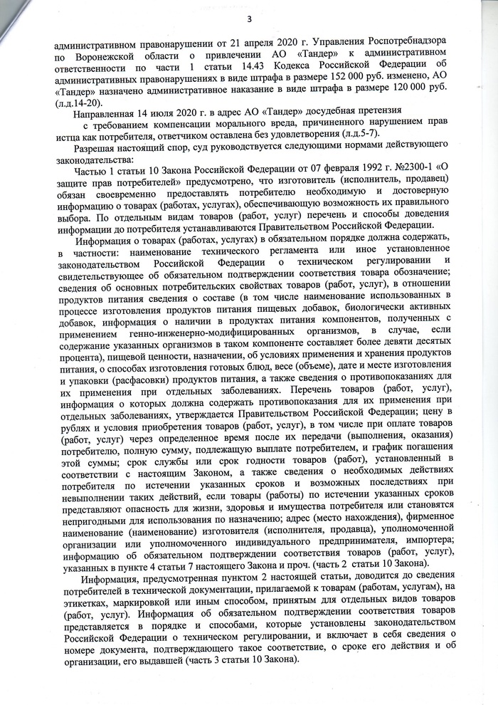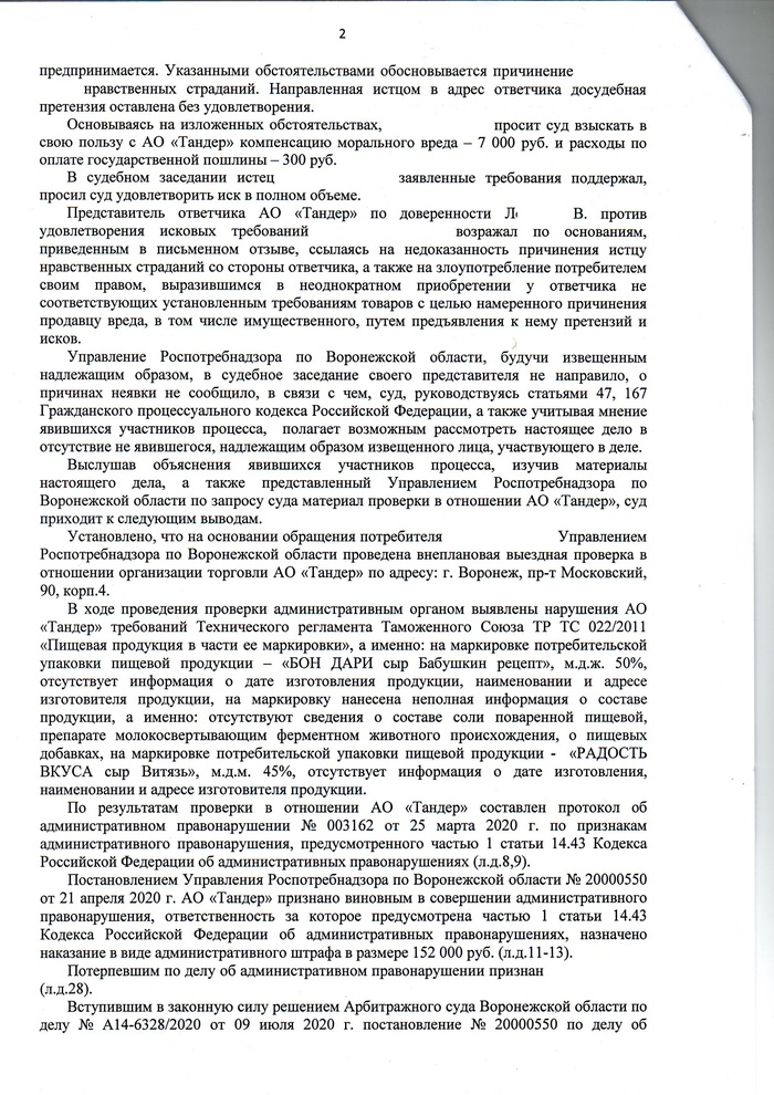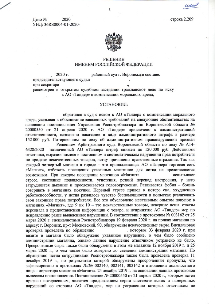 Сегодня получил долгожданное Решение в окончательной форме - АО Тандер должен мне 7500 рублей морального вреда.