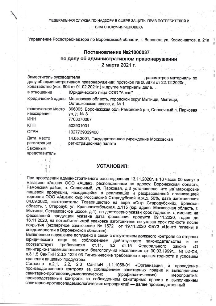 Роспотребнадзор провел еще одну проверку в этом магазине и опять обнаружил кучу "говна" на полках. Вынес Постановление на 152 000 рублей (скан есть тут - Продолжение поста «Магнит: Просрочка. ГБР. Полиция. Штрафы»). Это было 21.04.2020. На то рассмотрение прибыл аж Президент Управляющей компании ПАО МАГНИТ некто Дюнинг Ян Гезинюс. Но спасти компанию от штрафа не смог.