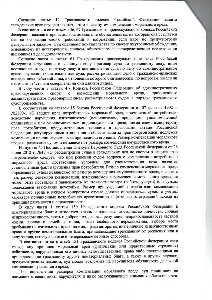 3. Пишем Иск (в рамках ЗоЗПП пошлиной не облагается). Вы имеете право вообще не расписывать как именно вы морально страдали - сам факт нарушения прав потребителя уже обязывает суд признать ваше право на компенсацию морального вреда. Однако, и судье надо как-то сумму обосновывать. Потому, если хотите побольше компенсации - пишите все подряд что сможете придумать. Шаблонов в Интернете миллион - можете половину из Решения по моему случаю скоммуниздить...