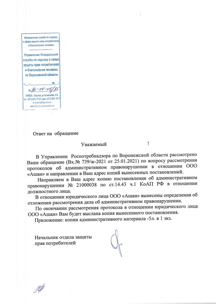 Дома написал на сайте Роспотребнадзора еще одно обращение и просил уже привлечь к ответсвенности не должностное лицо, а юридическое (само АО ТАндер). Сразу попросил признать меня потерпевшим (статья 25.2 КоАП РФ)