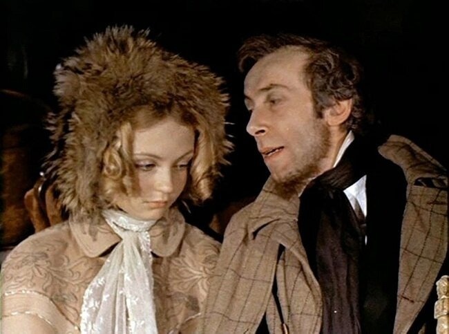 Дело в том, что "Русалочка", вслед за "Старой, старой сказкой", использует популярный тогда прием "рассказ в рассказе". Но если, к примеру, у Кошеверовой экранизация "Огнива" была спектаклем, сыгранным ночью бродячим кукольником, то в этом фильме история Русалочки - сказка, рассказанная в дилижансе таинственным господином с лошадиным лицом молоденькой девушке в теплой шапке.