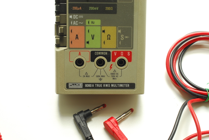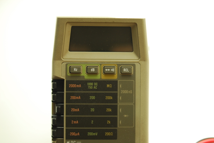 Переключатели режимов измерения и терминалы прибора. Пластик пожелтел от времени.
