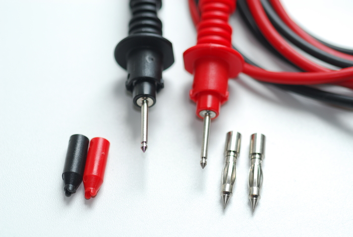 Сменные наконечники снабжены колпачками и контактной пружиной под гнездо типа "банан". Очень острые, как иголки, отлично прокалывают оксидную плёнку.