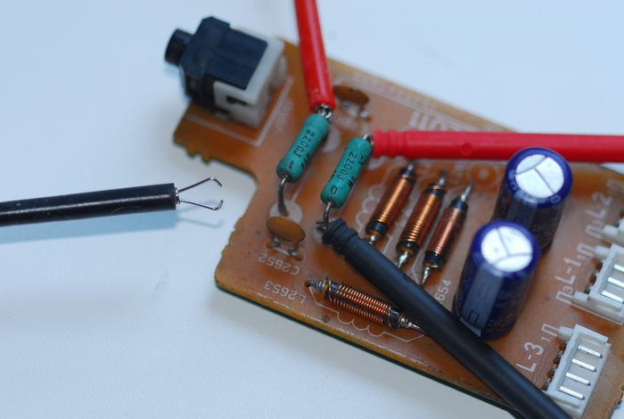Очень удобные гибкие цанговые щупы позволяющие залезть вглубь схемы, удобно зацепиться за измеряемую точку и не замкнуть ничего по пути.