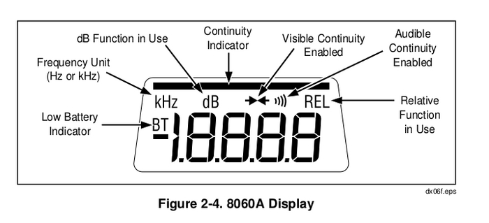 Под дисплеем расположены кнопки функций. Левая включает частотомер, вторая измерение в децибелах, третья включает режим прозвонки. Однократное нажатие — беззвучный режим (вверху дисплея загорается черный прямоугольник), двукратное нажатие — подключается еще и пищалка. Задержки срабатывания прозвонки почти нет, но всё же она ощущается.