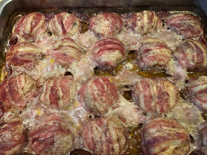 Однако надо сделать выбор, и я его остановлю на блюде фрикадельки в беконе.