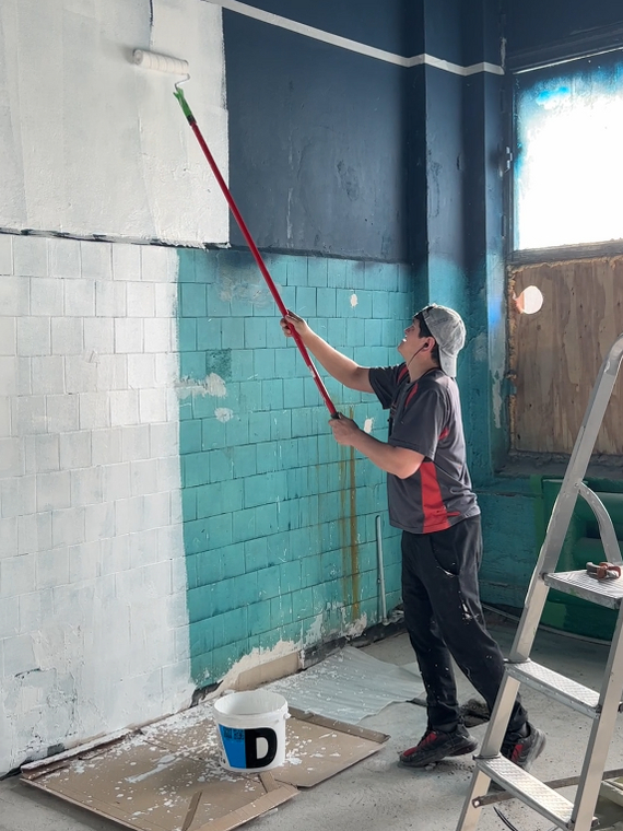 У нас несколько помещений малярки. Их обустраивали еще 3 года назад, как только заехали в новое здание - на Невскую мануфактуру. Средств на закупку чего-то сверх "профессионального" не было, поэтому делали все своими силами.