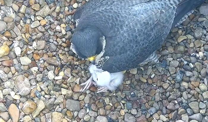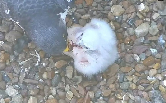 Камеры, расположенные над гнездом, зафиксировали первое яйцо, которая снесла мама-сапсаниха.