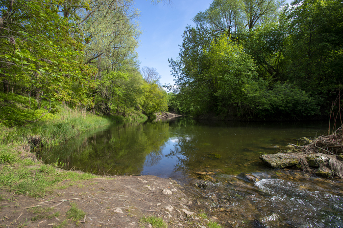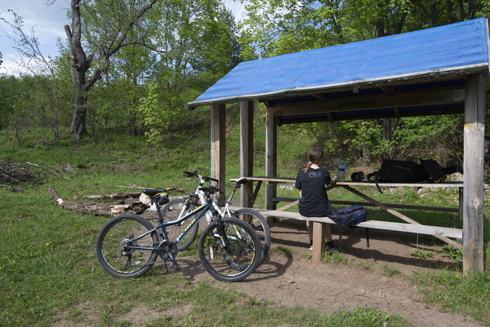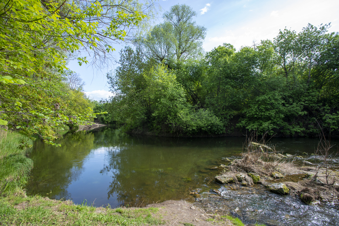 Половодья в этом году почти не было и вода в реке уже светлая и прозрачная, хоть и не такая кристальная как в конце октября, когда видно утонувшие пожелтевшие листья берёз и ив, устилающих дно до противоположного берега. Но долго рассиживаться мы не стали - через полчаса уже были в пути. Последние километры дались тяжелее, время близилось к полудню, и солнце разогрело воздух так, что даже тень деревьев не спасала от жары. Подъёмы преодолевали пешком - зато видами можно насладиться без опаски наскочить на камень. Так, неспешно, мы доехали до деревни Красная Горка, где начинался Ичалковский Бор.