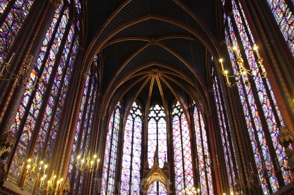 Как и Сент-Шапель, Нотр-Дам знаменит своими ансамблями средневековых витражей.
