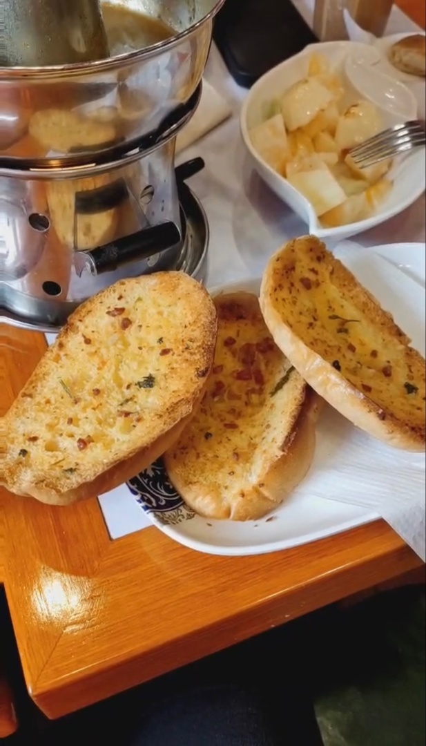 7) Потом нам принесли говядину тип в кари или что-то типо того и чесночные гренки. Тут тоже все ок и даже вкусно На дальнем фоне тип фруктовый салат с майонезом, но это явно чисто китайское извращение. Они тащатся от этого говна.