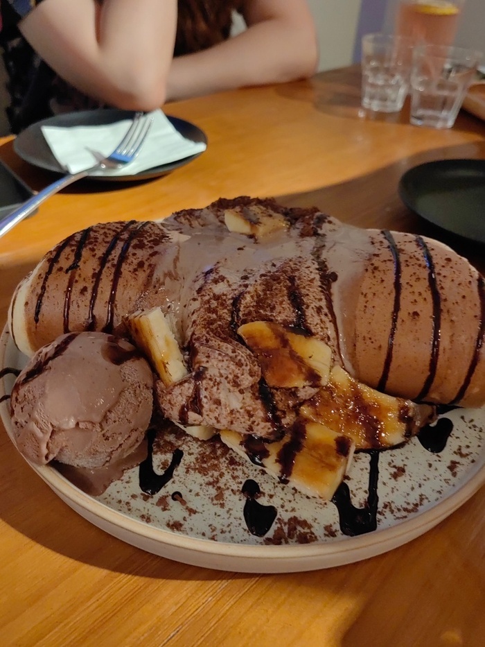 10) Тут уже другое прикольное заведение, там в основном паста, но мы хотели ток десерт. Это называлось блинчик, по размеру был похож на одеяло, а по факту это был вообще не блинчик, а воздушный омлет видимо чисто из белков. Вроде вкусно и интересно и неплохо, но в следующий раз есть омлет не хотелось бы, лучше все же блинчик)