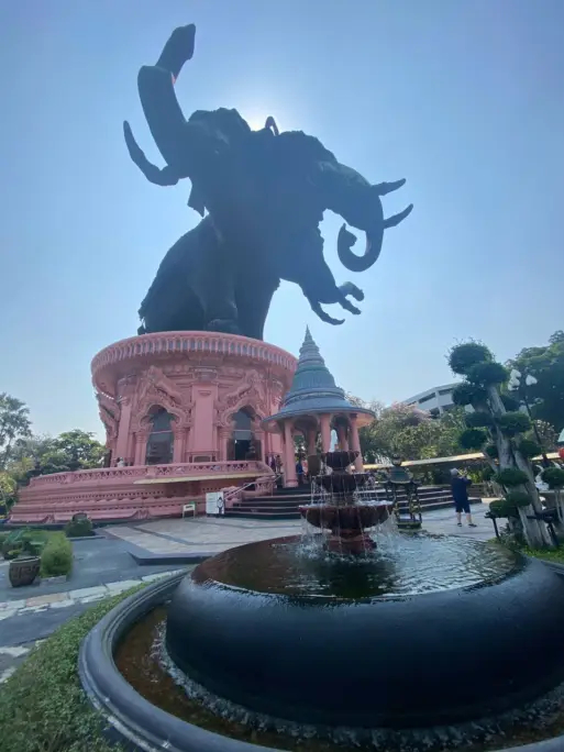 2) Тайланд - это слоны. Они тут везде, и у них есть храм розового слона или что-то типо того. По факту это большой трехголовый слон, внутри которого резной храм а-ля мини Эрмитаж. Но этот слон максимально эпичен! Он супер пафосно выглядит на фоне города, и в принципе, когда вы его видите со стороны среди домов, прям эстетика Вахи 40000.