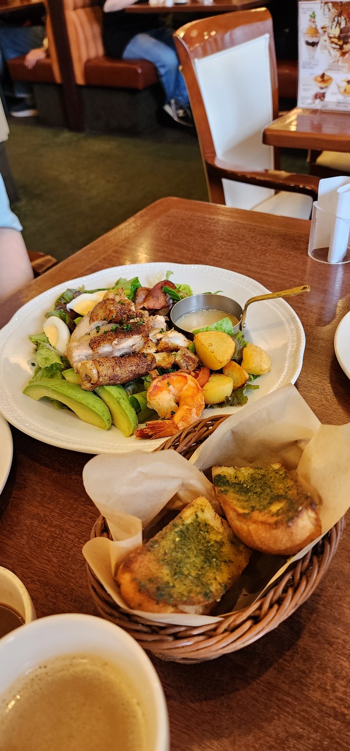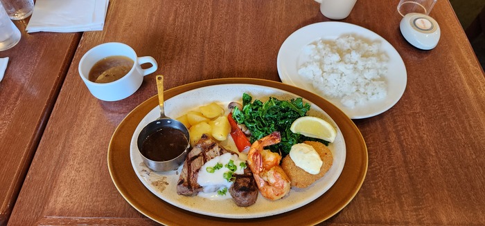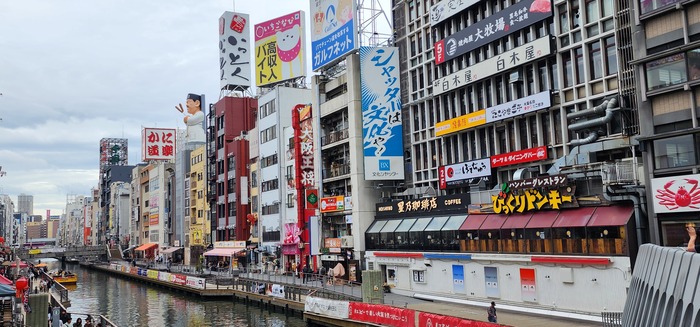 Из Химедзи мы отправились в Осаку. Оставив чемоданы в отеле, решили поехать в Нару. Но дойдя до станции JR, которая была рядом с отелем, служащий сказал, что она временно закрыта. посмотрела по картам гугл как лучше добраться до Нары, и оказалось, что с кучей пересадок очень долго. Решили, что оленей мы видели, старые деревни и города тоже видели, поэтому пошли гулять по городу. По пути попался ресторан Royl Host, где недорого и вкусно можно было пообедать (3 и 4 фото). Дошли пешком до улицы Дотомбори - куча магазинов, как брендов, так и недорогих, кафе, забегаловок и ресторанов. Но людей намного больше.
