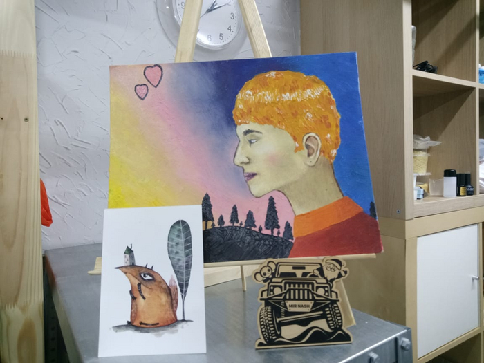 Любимая картина, которую нарисовал про меня младший сын лет в 15, холст, масло. Просто открытка про лису и сувенир для экспедиции Алексея Камерзанова в Африку. Сделано было ещё на заре коронавируса, но по слухам экспедиция состоялась только в этом году.