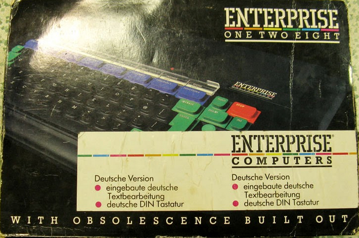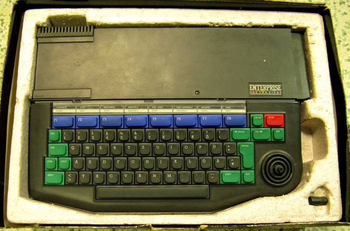 Enterprise 128 – компьютер на базе процессора Z80, имеет 128 килобайт оперативной памяти, встроенный джойстик! Изготавливался в Англии. Хоть он и имеет процессор Z80, но с компьютерами ZX Spectrum не совместим. Однако это можно было исправить с помощью специального картриджа, тогда все приложения для ZX Spectrum могли запускаться и на Enterprise 128.